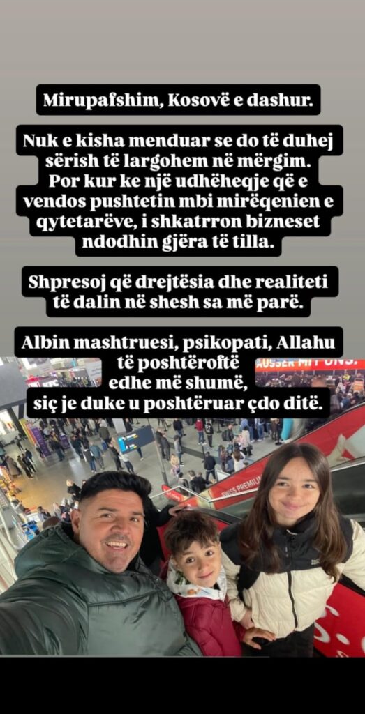 Në një reagim në rrjete sociale, ai shkroi: “Mirupafshim, Kosovë e dashur. Nuk e kisha menduar se do të duhej sërish të largohem në mërgim, por kur ke një udhëheqje që vendos pushtetin mbi mirëqenien e qytetarëve, i shkatërron bizneset, ndodhin gjëra të tilla.”