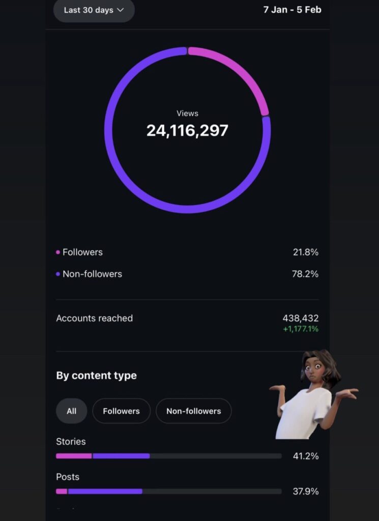 Ajo ka zbuluar se profili i saj në Instagram është parë mbi 24 milion herë brenda vetëm një muaji, një shifër mbresëlënëse që ka tërhequr vëmendjen e publikut.