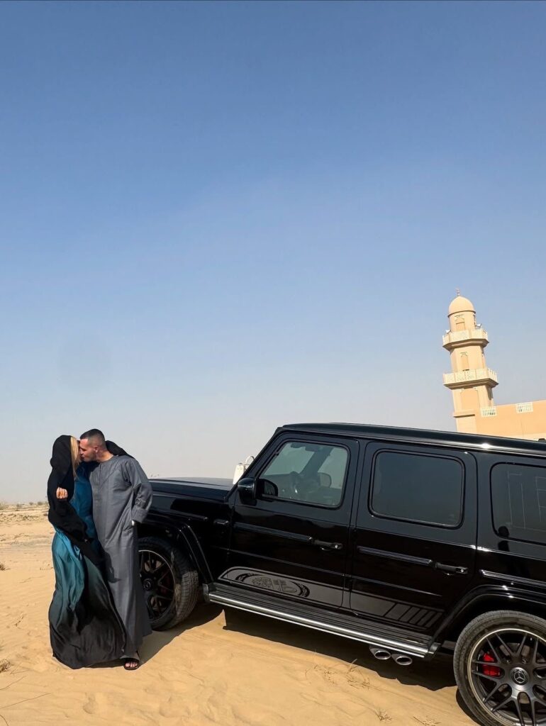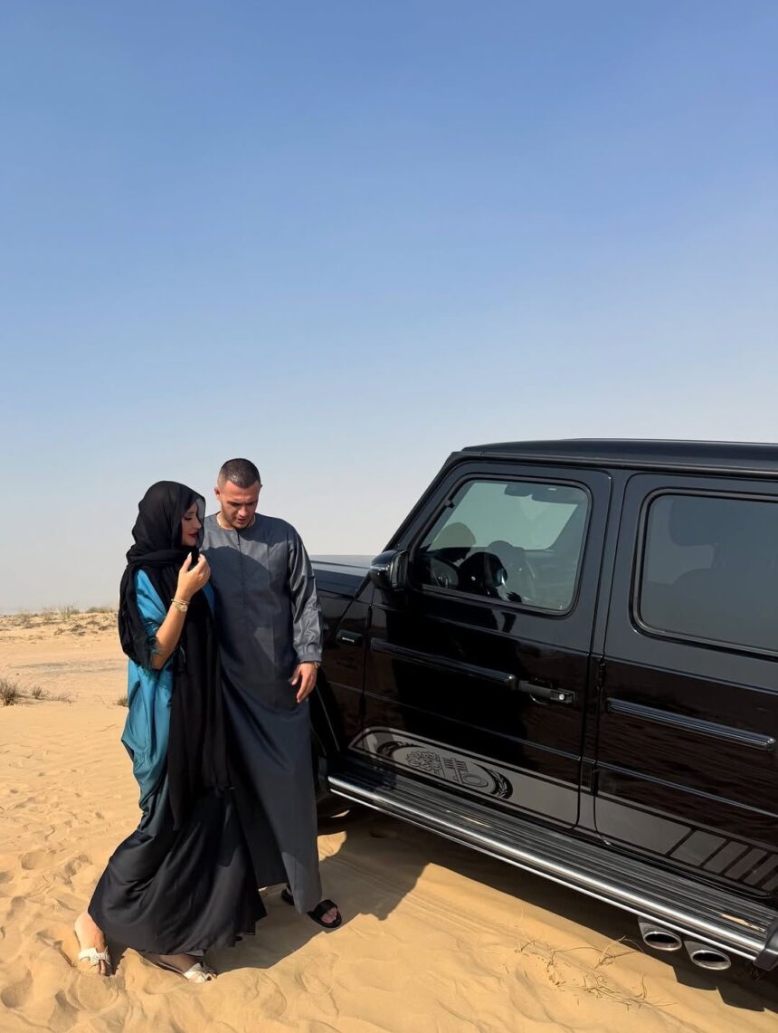 Në imazhe, ai shfaqet në krah të një vajze misterioze në mes të shkretëtirës.