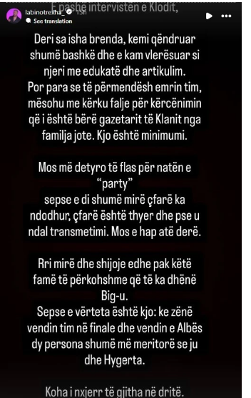 Pas intervistës së fundit të Klodit, ka ardhur një reagim i fortë nga Labinot Rexha, i cili ka publikuar një mesazh në rrjetet sociale duke adresuar drejtpërdrejt situatën.
