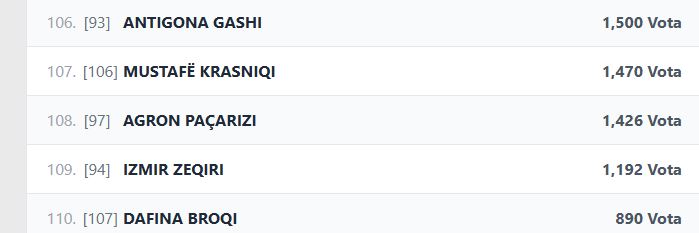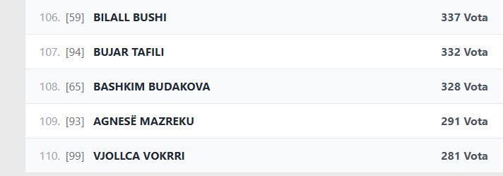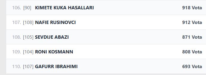 Në vijim paraqiten nga pesë kandidatë me numrin më të ulët të votave për secilën prej 4 partive politike: