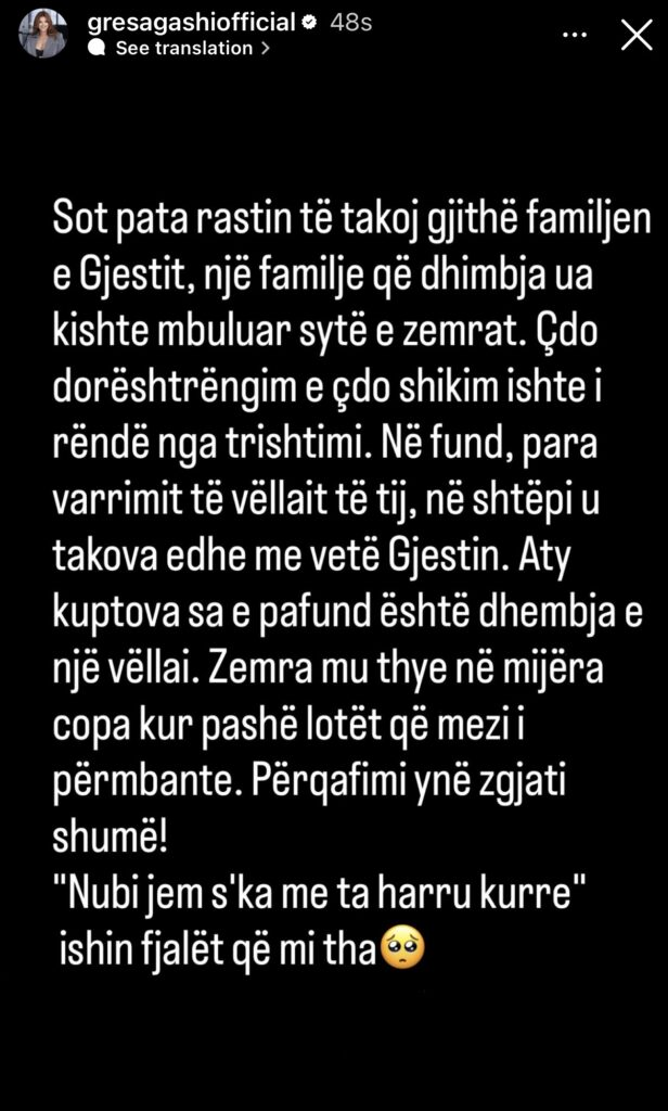 “Nubi jem s’ka..”, Gresa tregon se çka i tha Gjesti kur ajo e ngushëlloi për vëllain