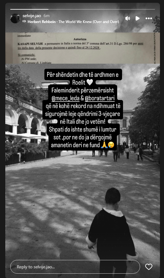 Ajo bëri të ditur se, falë ndihmës së Leda Meçes dhe Bora Tartarit, familja ka arritur të sigurojë në kohë rekord një leje qëndrimi 3-vjeçare në Itali, shkruan Indeksonline.